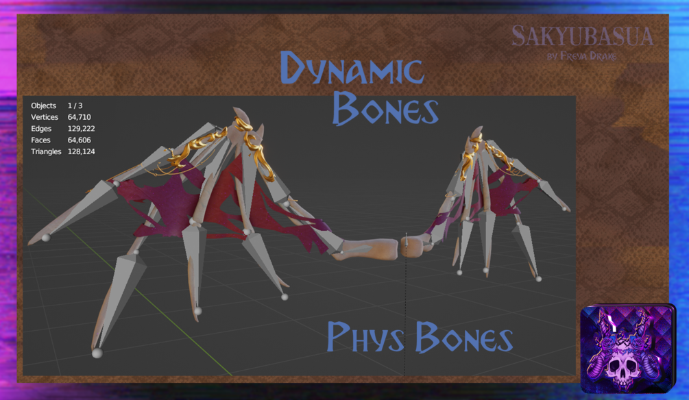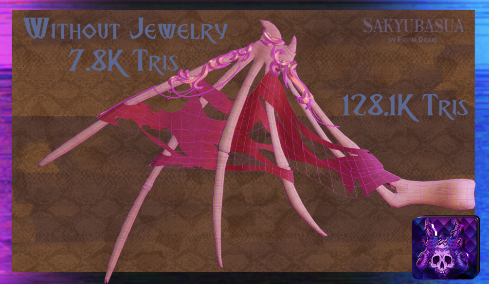 From-scratch modeled Bone Wings with hand-painted Textures and simple weightpaint, easy to add to your Vrchat Avatar.